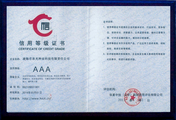 公司擁有種子繁育基地3萬畝,年產(chǎn)種子1200萬公斤左右。自成立以來在農(nóng)業(yè)部及遼寧省歷次花期檢驗中,所生產(chǎn)的種子質(zhì)量合格,擁有良好的儲備、晾曬和機械加工設備,為了提高種子質(zhì)量,2015年新購置種子脫粒機、清選機、烘干機以及電腦包裝機等整套加工設備,擁有經(jīng)省技術監(jiān)督局認證的“標準化檢驗室”,投資20萬元購買人工氣候室、土壤測試儀、低溫低濕冷藏箱等各種檢驗設備。公司重視種子科研工作,現(xiàn)有科研育種實驗基地100畝,科研上以自主研發(fā)為主,同時與多家科研單位合作育種,每年繁、育、測交材料2000多份,現(xiàn)以推出五個組合參加錦州區(qū)域試種,其中“農(nóng)光3號、農(nóng)光4號”在錦州地區(qū)試驗中產(chǎn)量居首位。2006年公司買斷的連玉16玉米品種已通過5個省市的審認定,具有適應性廣、抗逆性強、產(chǎn)量高的特點,曾榮獲大連科技進步一等獎,深受廣大農(nóng)戶的歡迎。2008年公司新選育的農(nóng)光4000玉米品種在市種子管理站新品種大區(qū)試驗項目中。2012年公司買斷錦玉118品種權,新品種的推廣與應用為公司的發(fā)展提供了充足的動力......